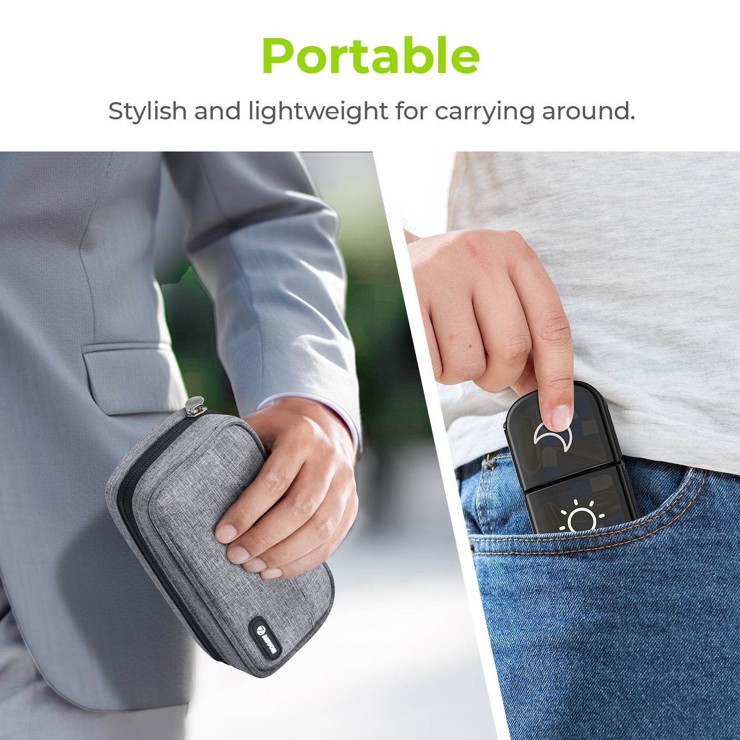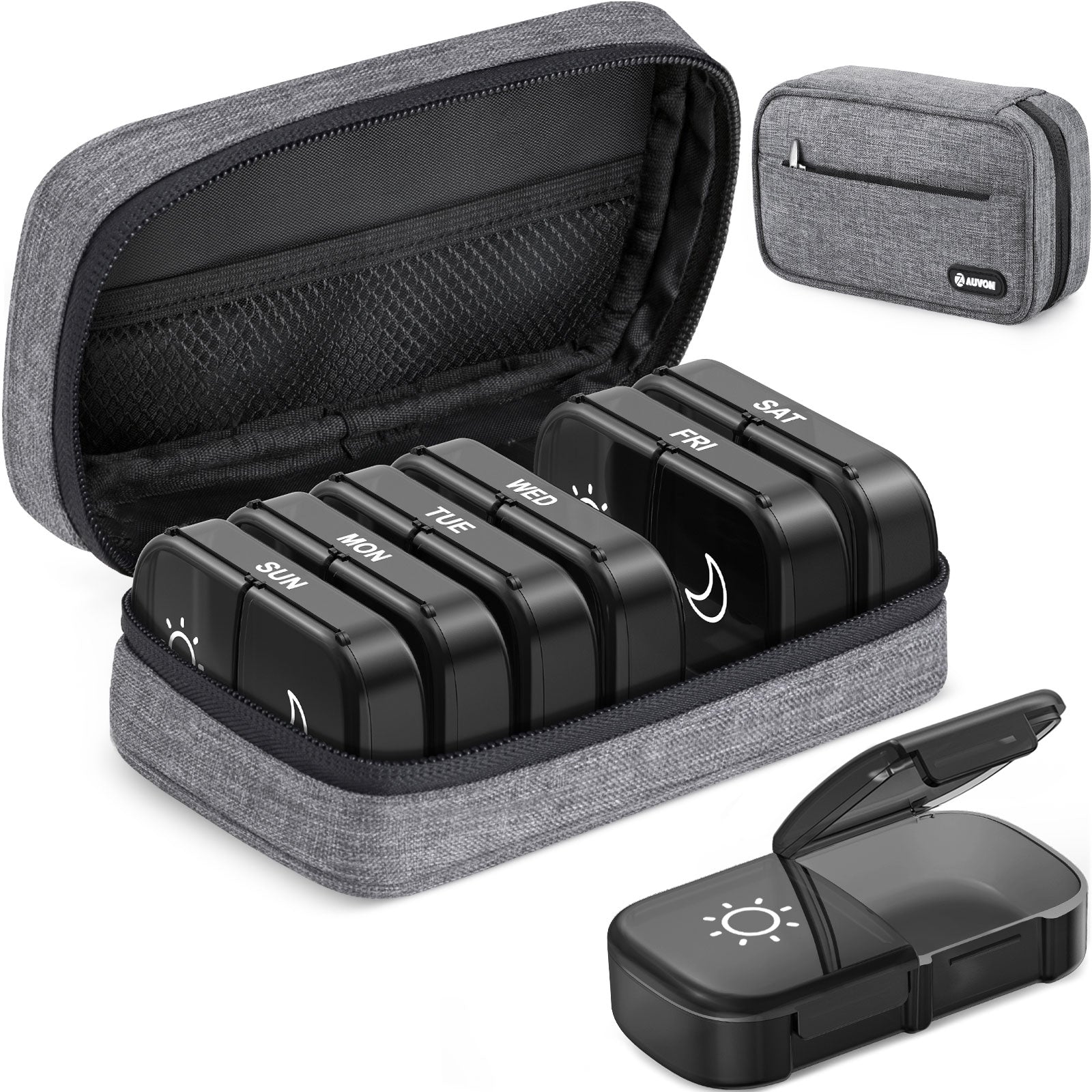 - Super Portable: Inner pill organizer 2 times a day can fit into your pocket or purse without being bulky, and keep your daily medicine, supplements always on hand. And this portable gray pill case can protect your medication privacy.
