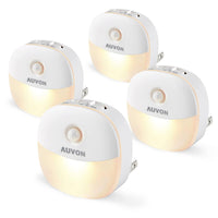 AUVON Plug-in LED Motion Sensor Night Light, Mini Warm White LED Nightlight with Dusk to Dawn Motion Sensor, Adjustable Brightness for Bedroom, Bathroom, Kitchen, Hallway, Stairs (4 Pack)