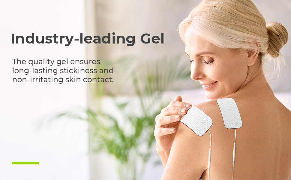 - Durable and Reusable. Low impedance solid electrode gel is made by upgraded industry Tier-1 adhesive, which can provide excellent self-adhesive performance and easy clean up for maximum 100 uses. Our medical grade reusable tens pads replacement are latex-free and non-irritating to ensure users of all skin types have a safe, comfortable experience.