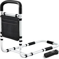- Ergonomic Padded Handle. The handle of this bed side rail adopts the ergonomic curvature which fits user's wrist to reduce the necessary strength when getting up. The anti-slip foams cover the rail handle to provide a soft touch and extra friction. This thoughtful bedside assistance is a safe and practical tool for the elderly, pregnant women and surgery-recovering people.