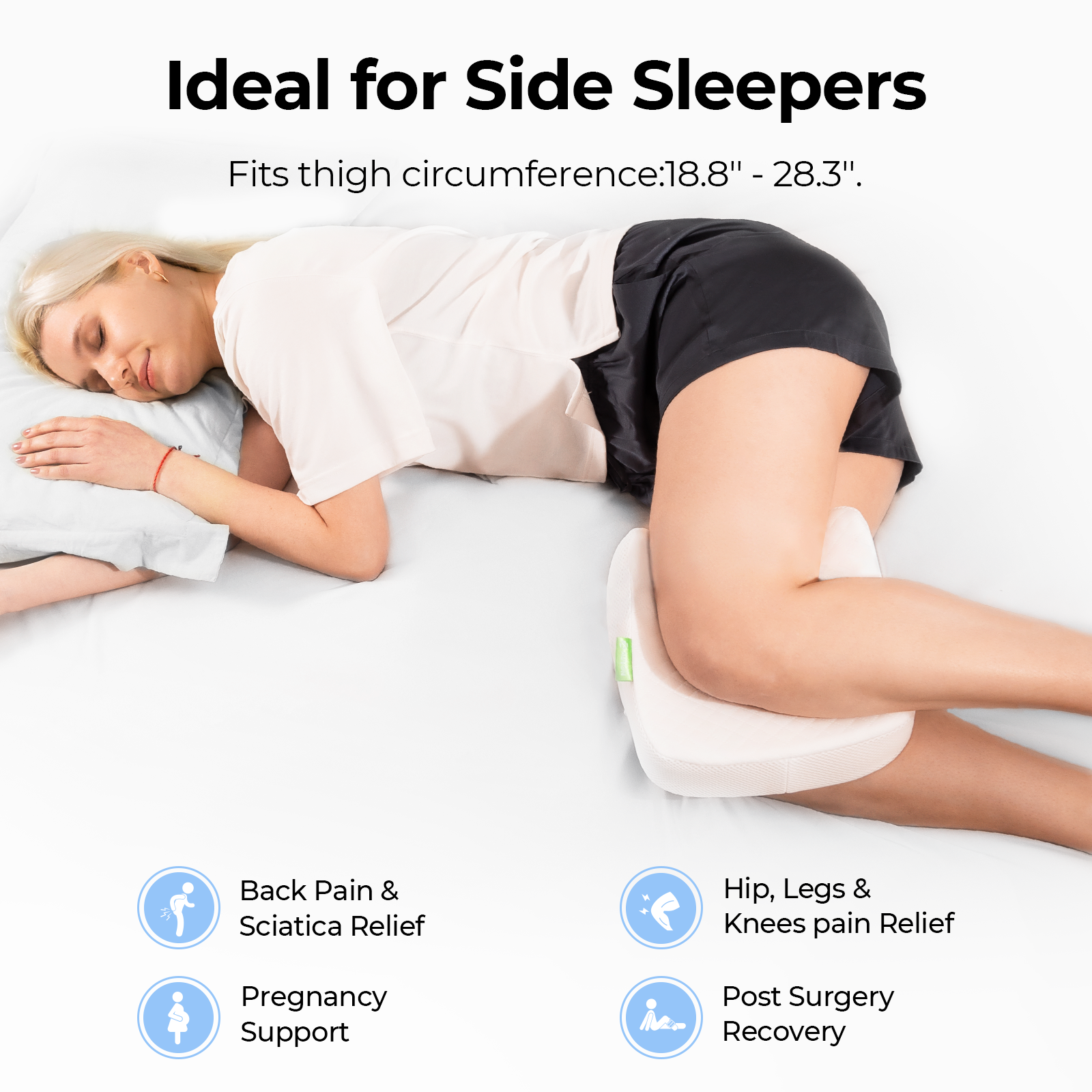 - Ideal Support for Side Sleepers. Side sleepers often suffer from pain from the distorted spine. AUVON knee wedge pillow adopted high-density memory foam, provides just the right cushioning and support and promotes spinal alignment, also relieves lower back, hips, knee joints, and sciatica pain, allowing you to enjoy restful sleep all night.