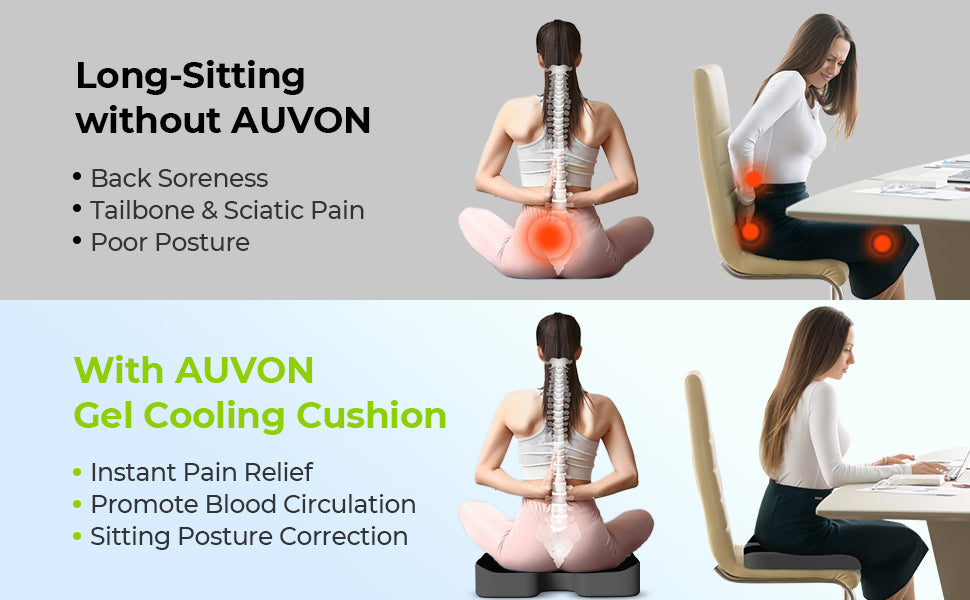 - Provide What You Want. The gel memory foam cushion adopts an anti-slip bottom to keep itself secure on the seat. Its breathable honeycomb fabric further prevents heat buildup, ensuring long-lasting coolness. You can rely on the designs of AUVON tailbone cushions.