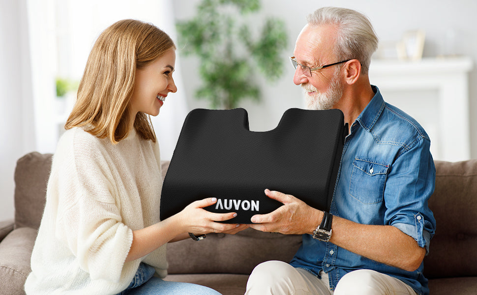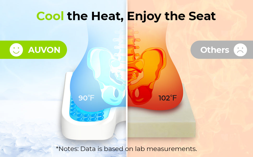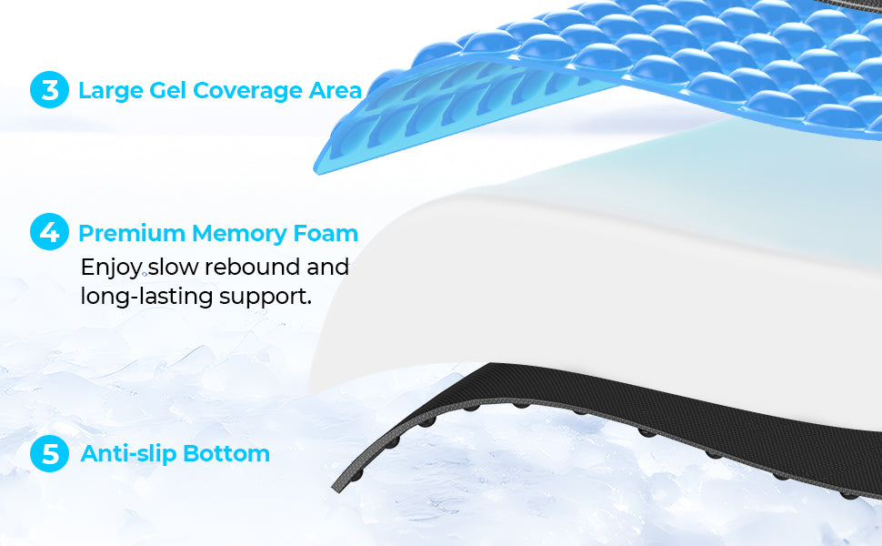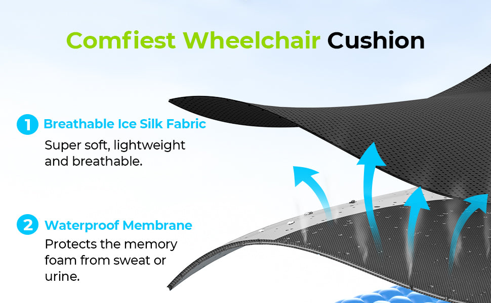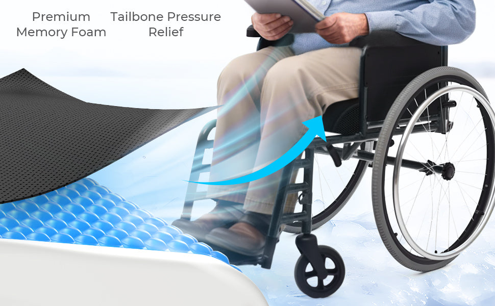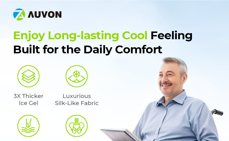 AUVON Gel Wheelchair Seat Cushion, Relieve Sciatica, Back, Coccyx, Pressure Sore and Ulcer Pain, Refreshing & Ergonomic Chair Cushion with Waterproof Silk Fabric, Anti-Slip Cover, Removable Strap