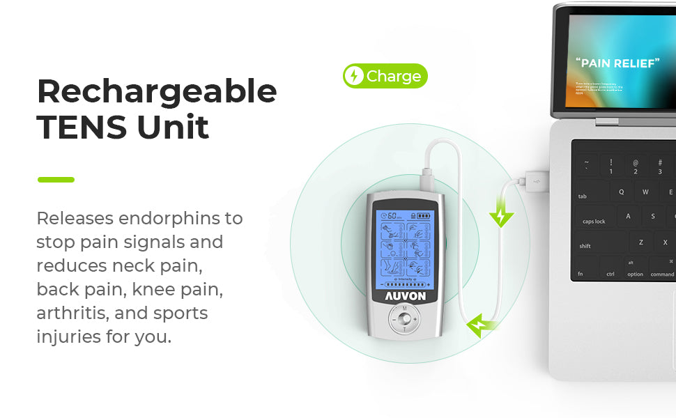 AUVON Rechargeable TENS Unit Muscle Stimulator, 24 Modes 4th Gen TENS Machine with 8pcs 2"x2" Premium Electrode Pads for Pain Relief