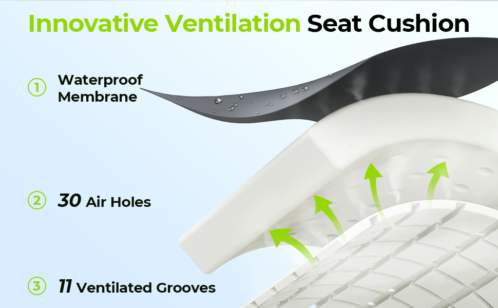 - Innovative Ventilation System for Pressure Sore Prevention. This wheelchair seat cushion is designed to provide innovative comfort through a heat dissipation system consisting of 30 air holes and 11 ventilated grooves. Even if you have to sit in a wheelchair for a long time, this cushion can help prevent stuffiness and reduce the risk of bedsores.