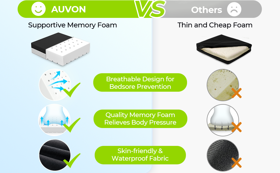 AUVON Ventilation Wheelchair Seat Cushions for Tailbone, Pressure Sore & Ulcer Pain Relief, Innovative Breathable Memory Foam for All-day Comfort, Waterproof & Anti-slip Chair Cushion for Back Support